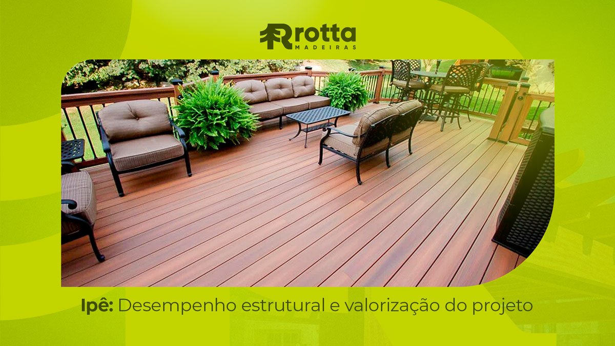 O Ipê se destaca por ser uma escolha ampla e consistente. Ele pode ser utilizado em estruturas, áreas externas e também em aplicações onde o acabamento e a percepção de valor são fundamentais.